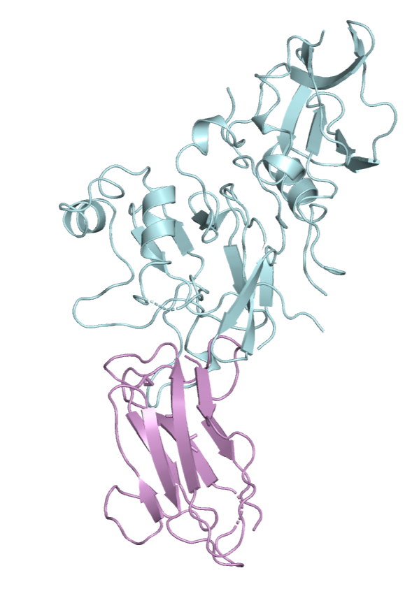 Figure: X-ray crystallographic structure of the AMA1–WD34 complex. AMA1 is shown in cyan, and the i-body WD34 is shown in purple.
